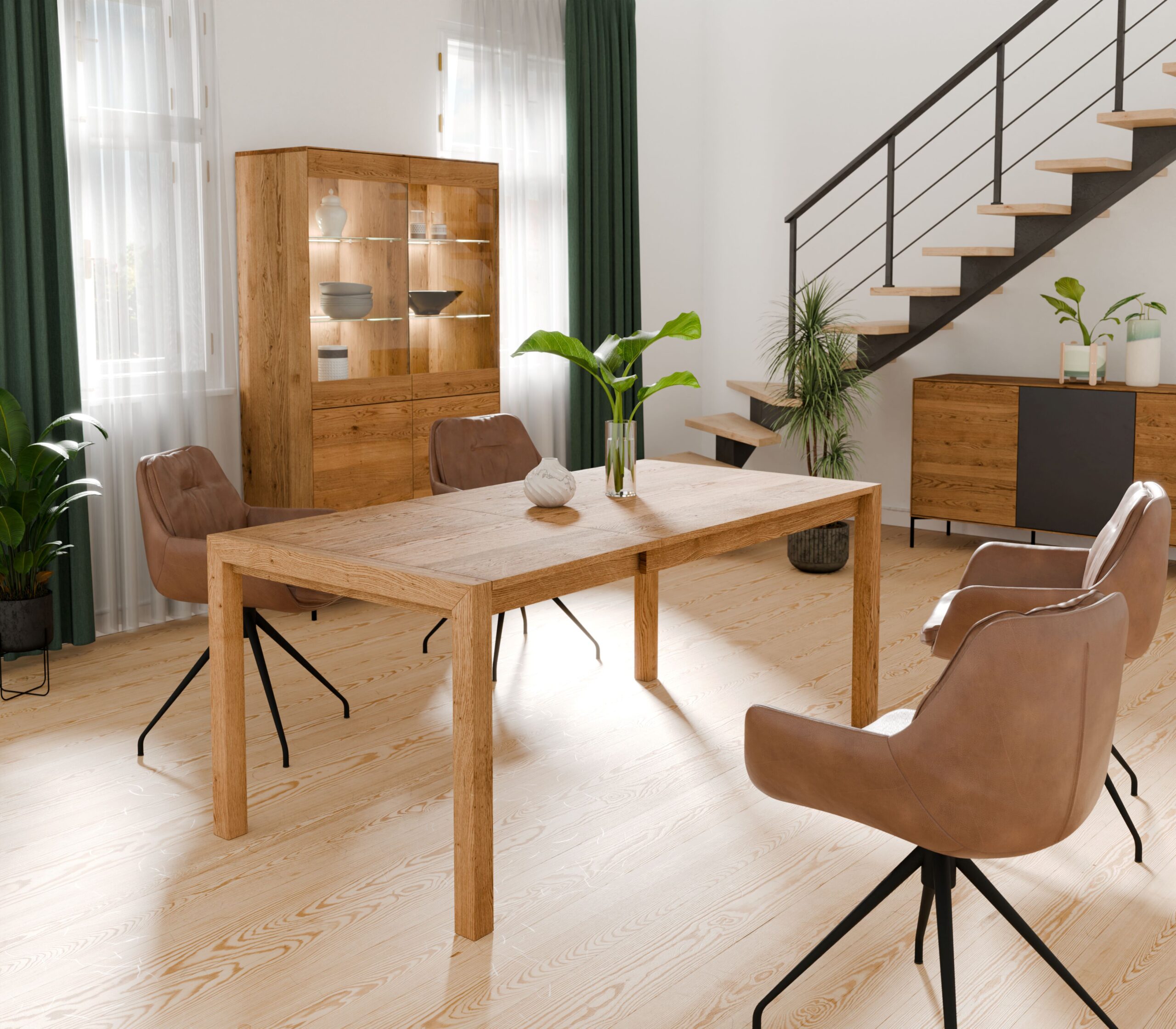 När du drar undan toppskivan på Atlanta bordet, kommer de smart dolda butterfly-förlängnings skivorna fram. Detta ger dig möjligheten att enkelt utöka bordets yta med 50 eller 60 cm. Oavsett om du bjuder in vänner och familj för en festlig middag. Eller bara vill ha extra utrymme för vardagslivet, så anpassar sig Atlanta bordet efter dina behov.