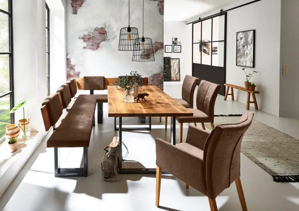 Fargo sittbänk finns utan eller med ryggstöd, kan även fås som hörnbänk i vinkel. Välj kantprofil för att få fram det uttryck du vill ha på möbeln.