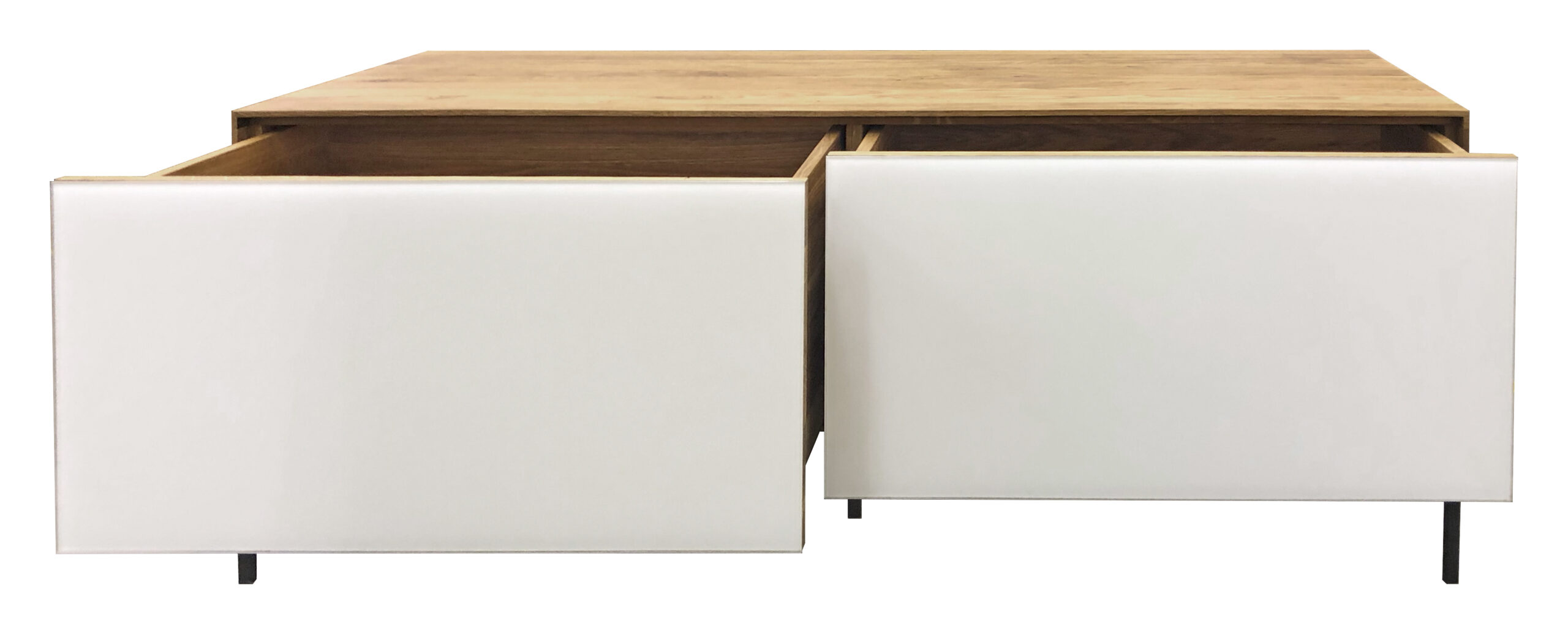 Du har möjlighet att välja mellan flera dörralternativ: trädörrar, glasdörrar, stendörrar eller metalldörrar, samt synliga lådor eller dolda bakom dörrar, allt för att anpassa möbeln efter dina specifika önskemål och behov.