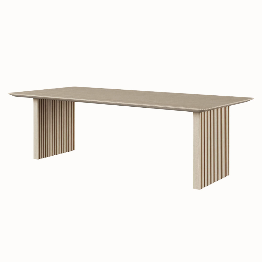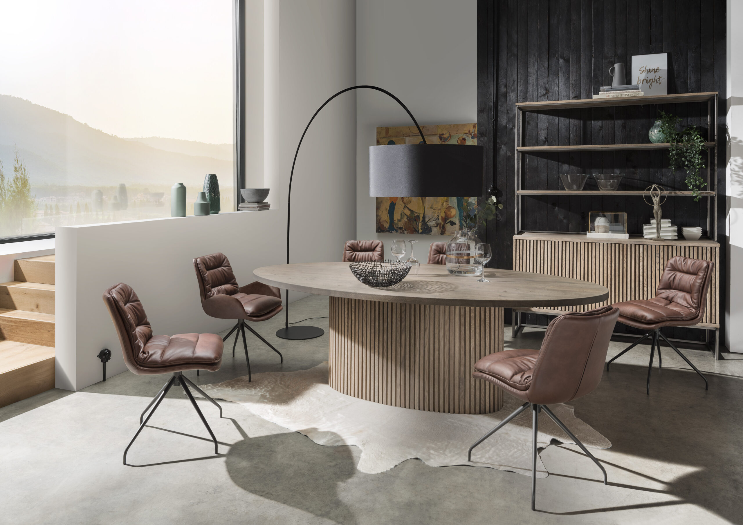 Timos stilrena design, med sina subtilt utformade ribbor i underredet, skapar en fascinerande spel av skuggor och ljus, vilket ger din inredning en unik och konstnärlig dimension. Det är inte bara ett matbord; det är en centralpunkt i ditt hem där minnen skapas och relationer fördjupas.