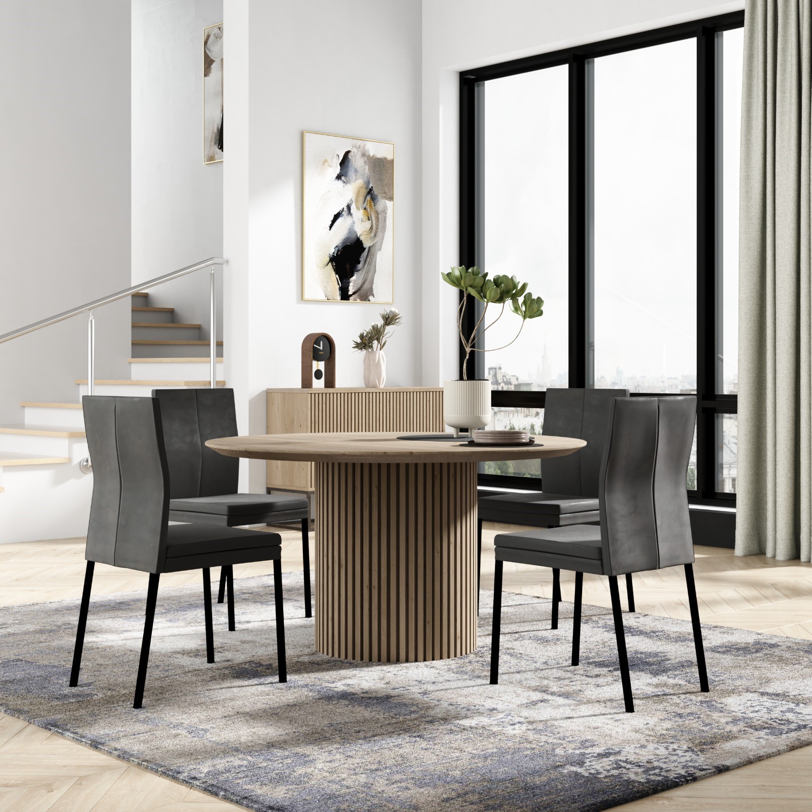 Timos stilrena design, med sina subtilt utformade ribbor i underredet, skapar en fascinerande spel av skuggor och ljus, vilket ger din inredning en unik och konstnärlig dimension. Det är inte bara ett matbord; det är en centralpunkt i ditt hem där minnen skapas och relationer fördjupas.